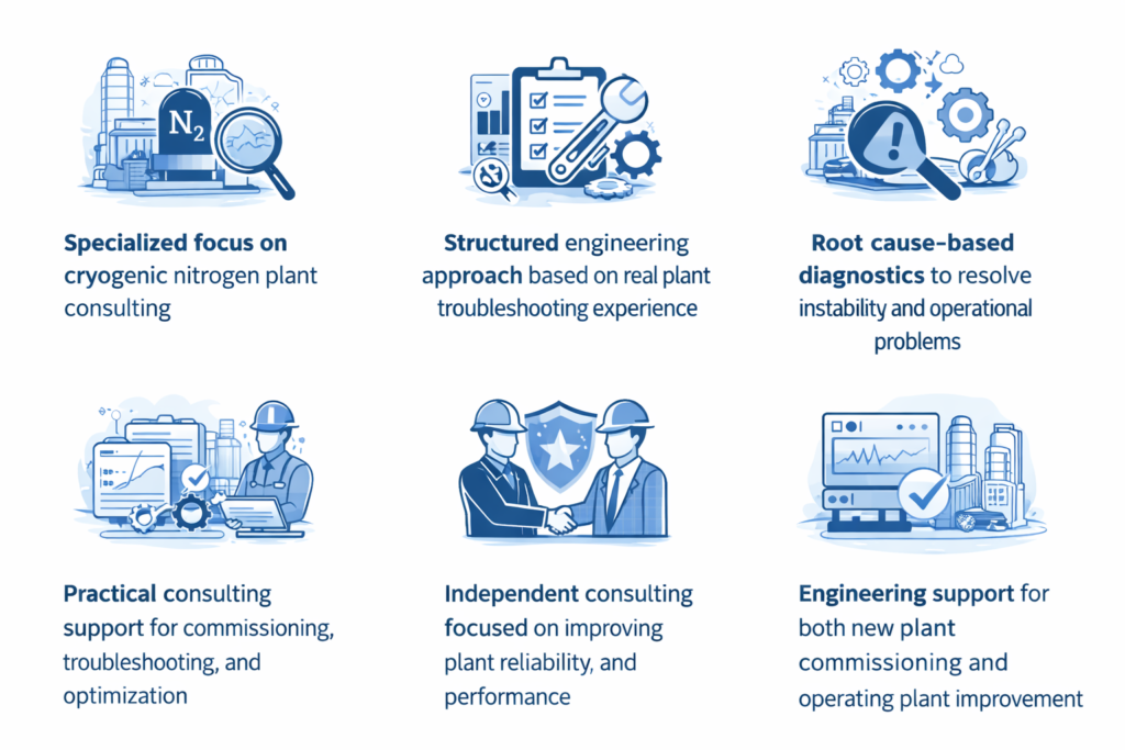 Engineering tools and structured frameworks designed to improve plant reliability and operational stability based on cryogenic nitrogen plant consulting best practices.