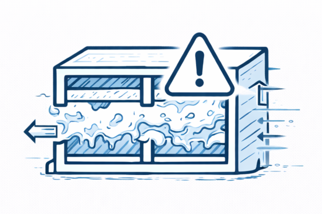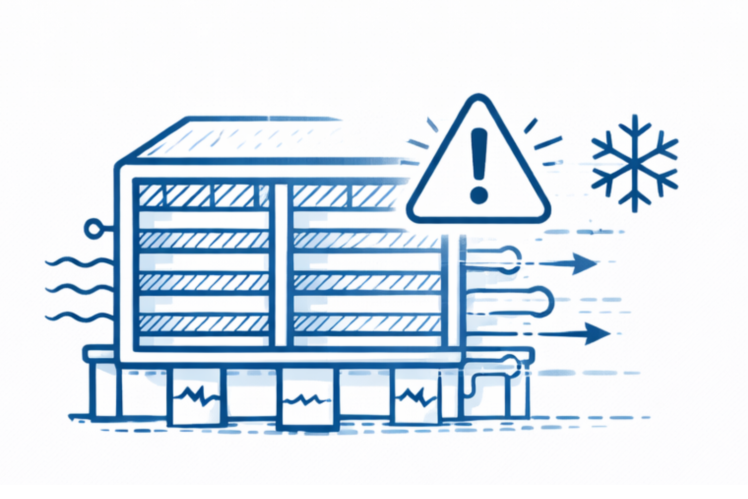 This freezing can gradually obstruct flow channels and affect the temperature distribution across the exchanger.