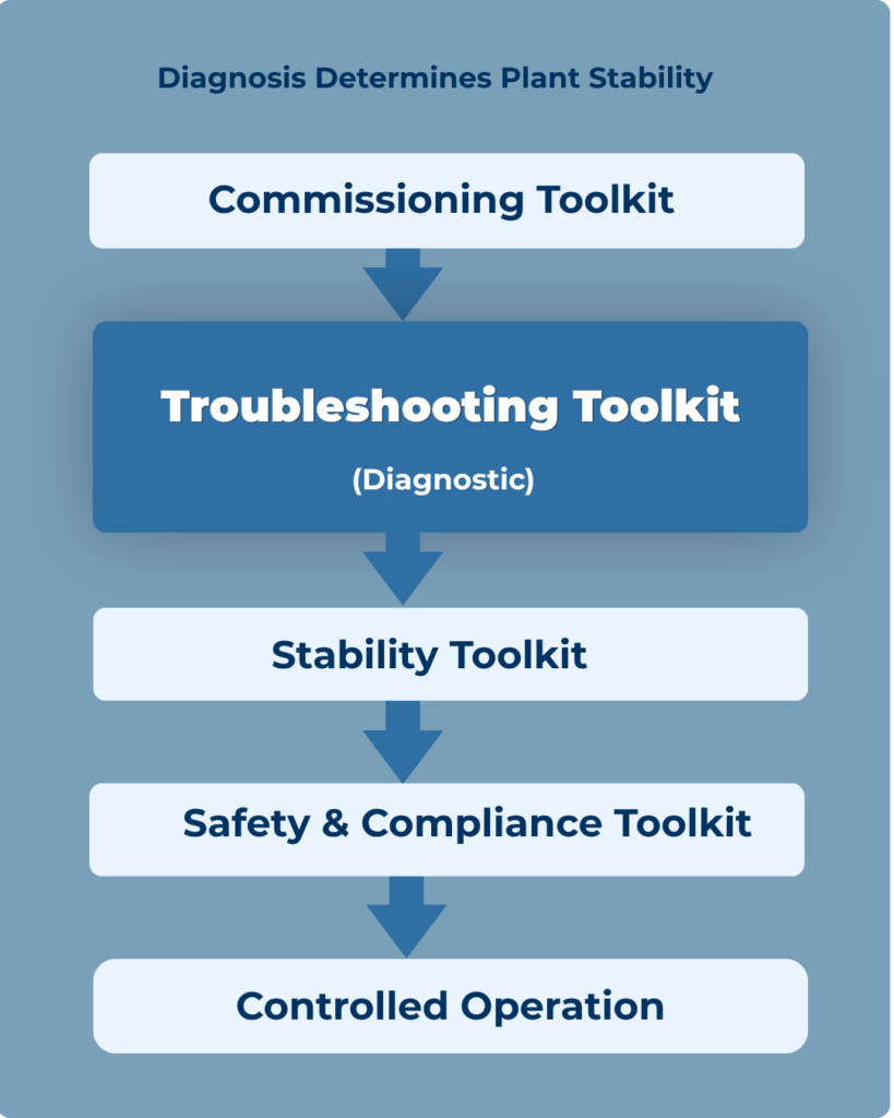 A structured engineering system to diagnose, stabilize, and resolve real plant problems — not symptoms.